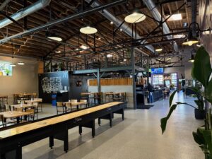 Next up: The sample is the Teacher’s Pet, a 5.4% Pale Ale that I had really wanted to love. Unfortunately, while the primary hop is Citra, this also uses Nelson hops and I’m just not fond of that flavor so I’m glad I didn’t do the full short pour of it. Having the sample also meant that I didn’t take a 4-pack home as I’d planned to! The full short pour is Farmer Jr, a 6.8% Hazy IPA. It’s a “Jr” because they also have this in a Double IPA. It struck me as mostly a stronger version of Teacher’s Pet with strong citrus but also with piney flavors substituted for the Nelson hops flavor. I wasn’t too sure about it, but certainly didn’t dislike it.