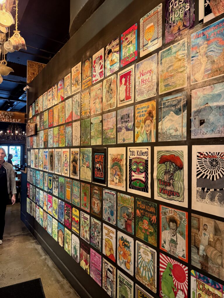 Forager has a fascinating interior and will soon be sharing space with Parlor Doughnuts (opening soon, and you walk through the doughnut shop to get to the brewpub). Here are several photos of the interior, including a partial view of the penny-covered tabletop that spells out “Forager.”