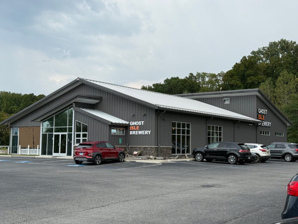 I’ll be honest — I wasn’t going to visit Ghost Isle today. My planned destination was Beer Church Brewing, also in New Buffalo, but they were overflowing with people and I assume that’s because the on-again/off-again rains were keeping people from sitting in the large outdoor area. So after driving by Beer Church, I headed for my backup just a couple of miles away.