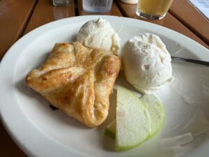 I really wanted a pint of the Stoner’s Paradise but decided to try their Hummingbird Hefeweizen (5.6%) and it was good. It was so normal for this style that it almost didn’t stand up to the others, but after finishing the pint, I really did like it. The dessert is their seasonal special, Apfel Strüdel (although they Americanized the name for some reason). The strudel could have used a few more minutes in the oven, but otherwise, it was just the right size and tasty.