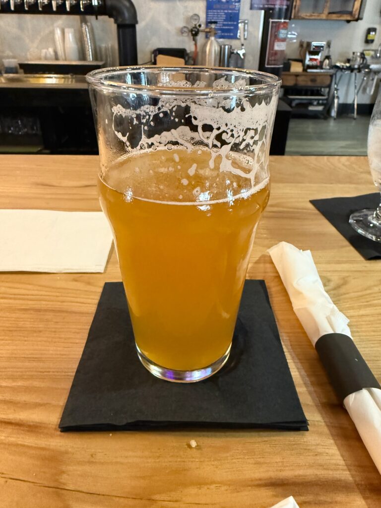 Once the first pint was empty, I opted for an NEIPA I hadn’t had before, the Juicy Juicy Trudy and it was fabulous! This uses Citra, Mosaic, and El Dorado hops including generous double dry hopping, and it is full of flavor but without a bitter bite — it’s just very, very smooth and delicious. Again, if only they’d had it available in cans …