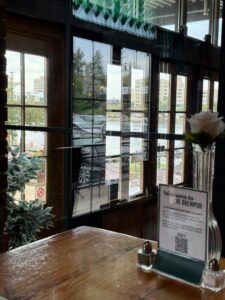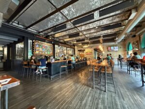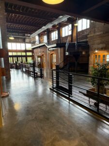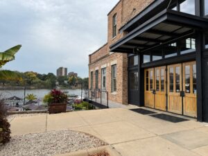 Prairie Street Brewing is right on the river and in fact has the only marina in the area. There’s a large outdoor area for the brewery right at the marina and boat owners can even rent slips for the season. Their indoor space is industrial-chic pleasant with more tables than the photo shows. Even the building they’re in has a lot of space; one of these next pictures is taken from my table where I had a view of the water, and the other is taken in the entry area of the building outside the brewpub.