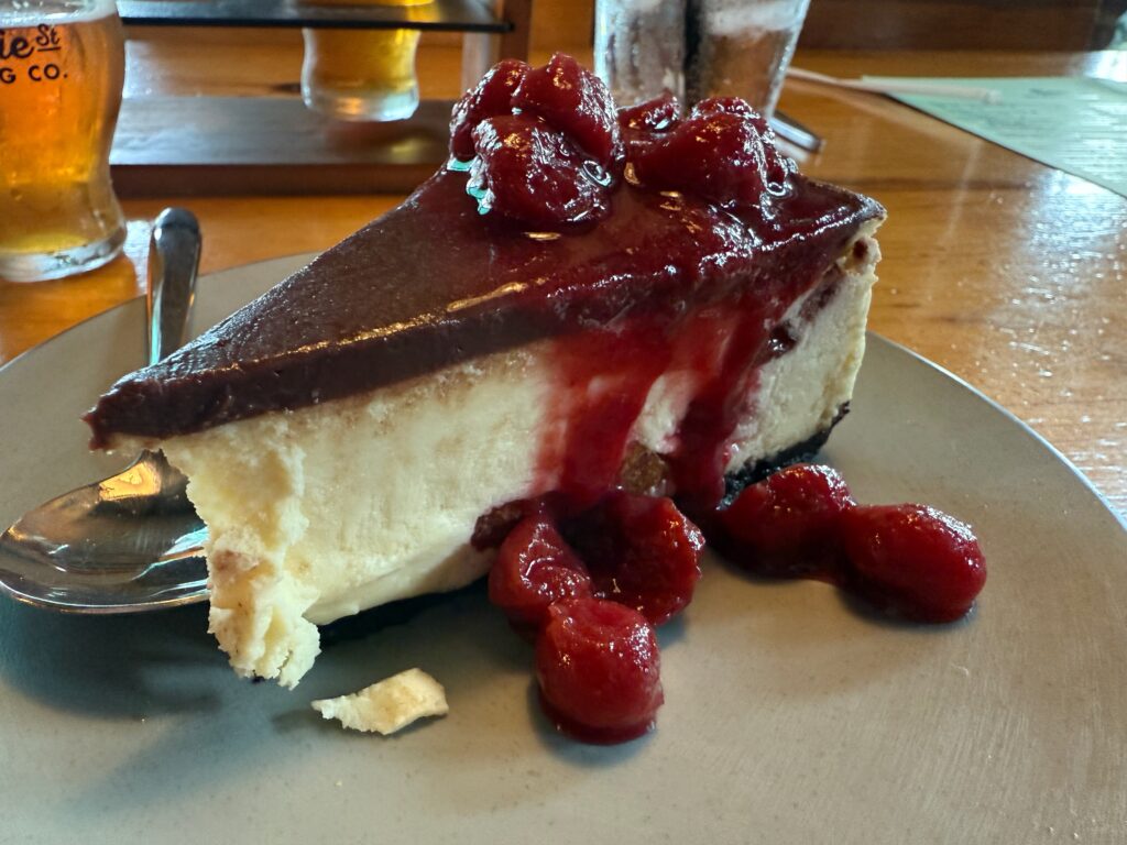 Rather than finish the potato salad (although I made a great effort and had more than half of it), I ordered the seasonal dessert special, a Black Forest Cheesecake.